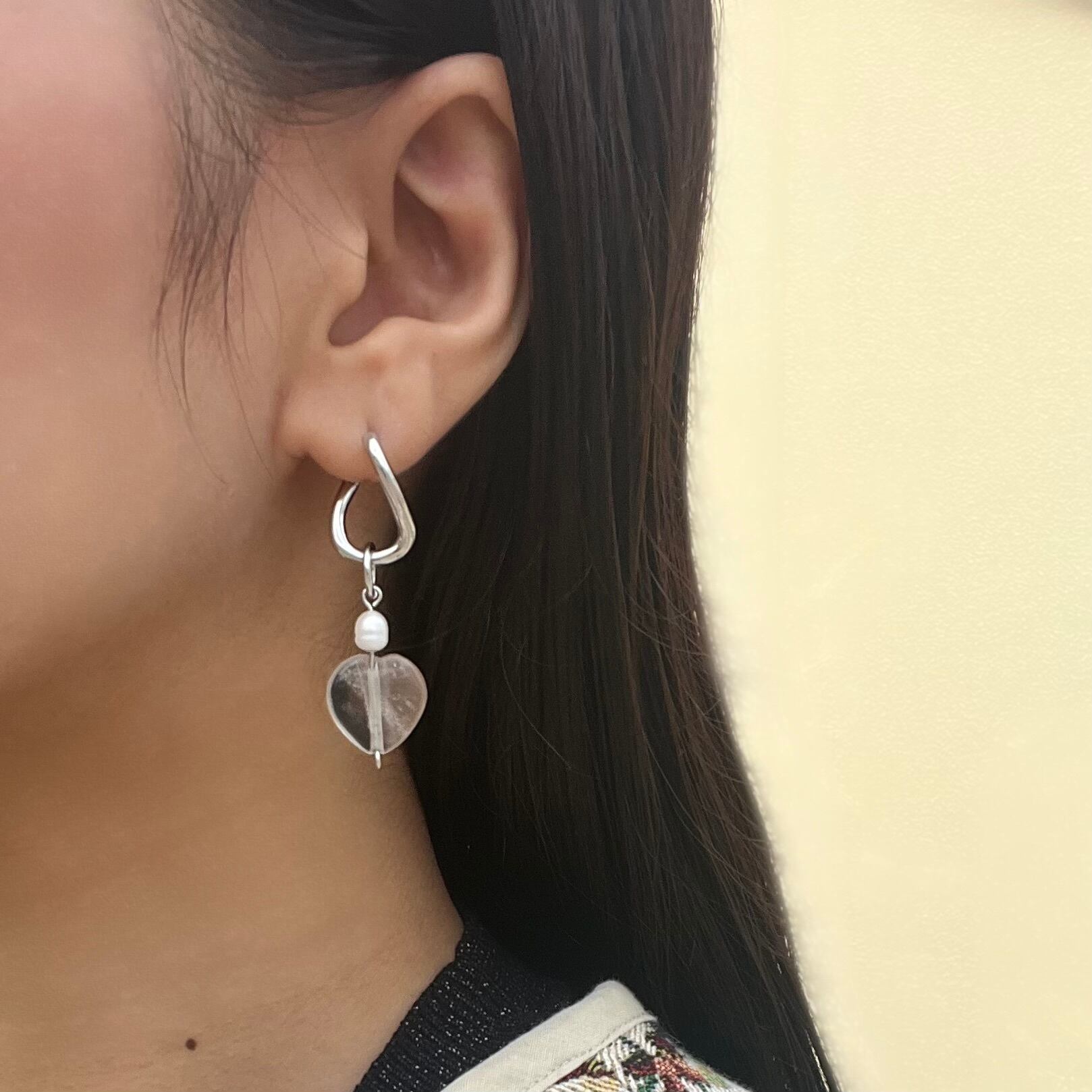 透明感を出してくれて様々なアクセサリーに合わせやすいデザイン。パーツを外すとフープのみでも使えます。