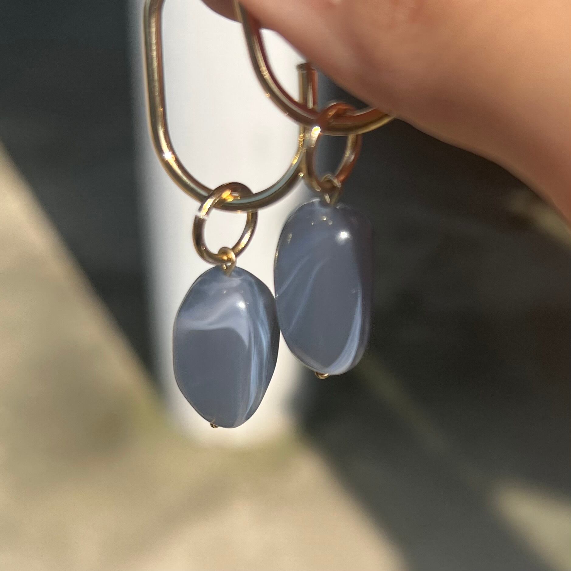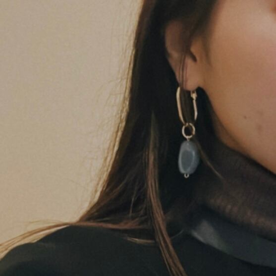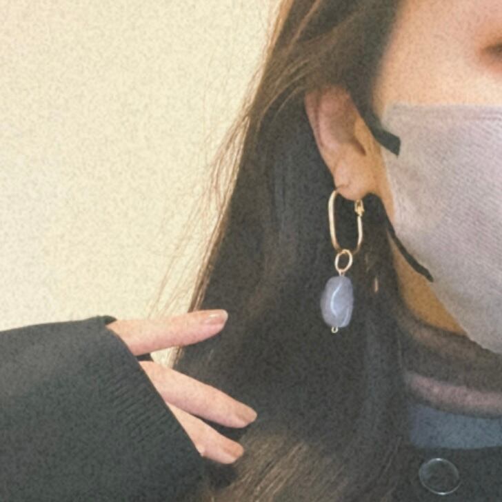 ブルーグレーのマーベルパーツとゴールドを組み合わせたピアス。軽量でありながらアクセサリーの存在感がしっかりありアップスタイルでも可愛いです!