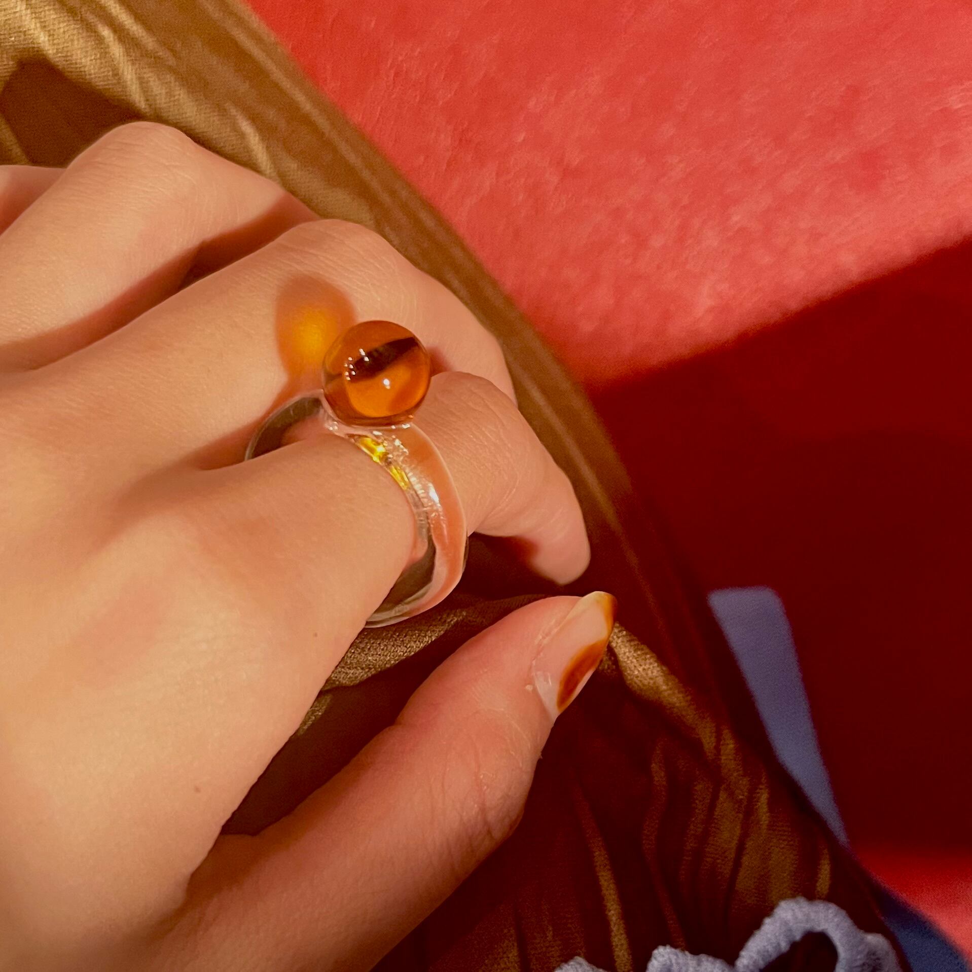 太陽のエネルギーをチャージしてお出かけしよう!晴れの日もそうじゃない日も気分を高めてくれます。ころんと丸いフォムルがキュートなガラスリング。インテリアとして飾っても可愛いです。